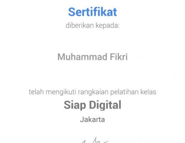 Jakarta Web Desain (M. Fikri) sebagai mediator UKM dalam mengembangkan strategi Marketing Digital dengan membuat website untuk memasarkan Produk/ Jasa pelaku UKM, terus belajar mengikuti trend dunia digital. Semoga tidak hanya sampai di kelas dasar Siap Digital dan bisa mengikuti level berikutnya.